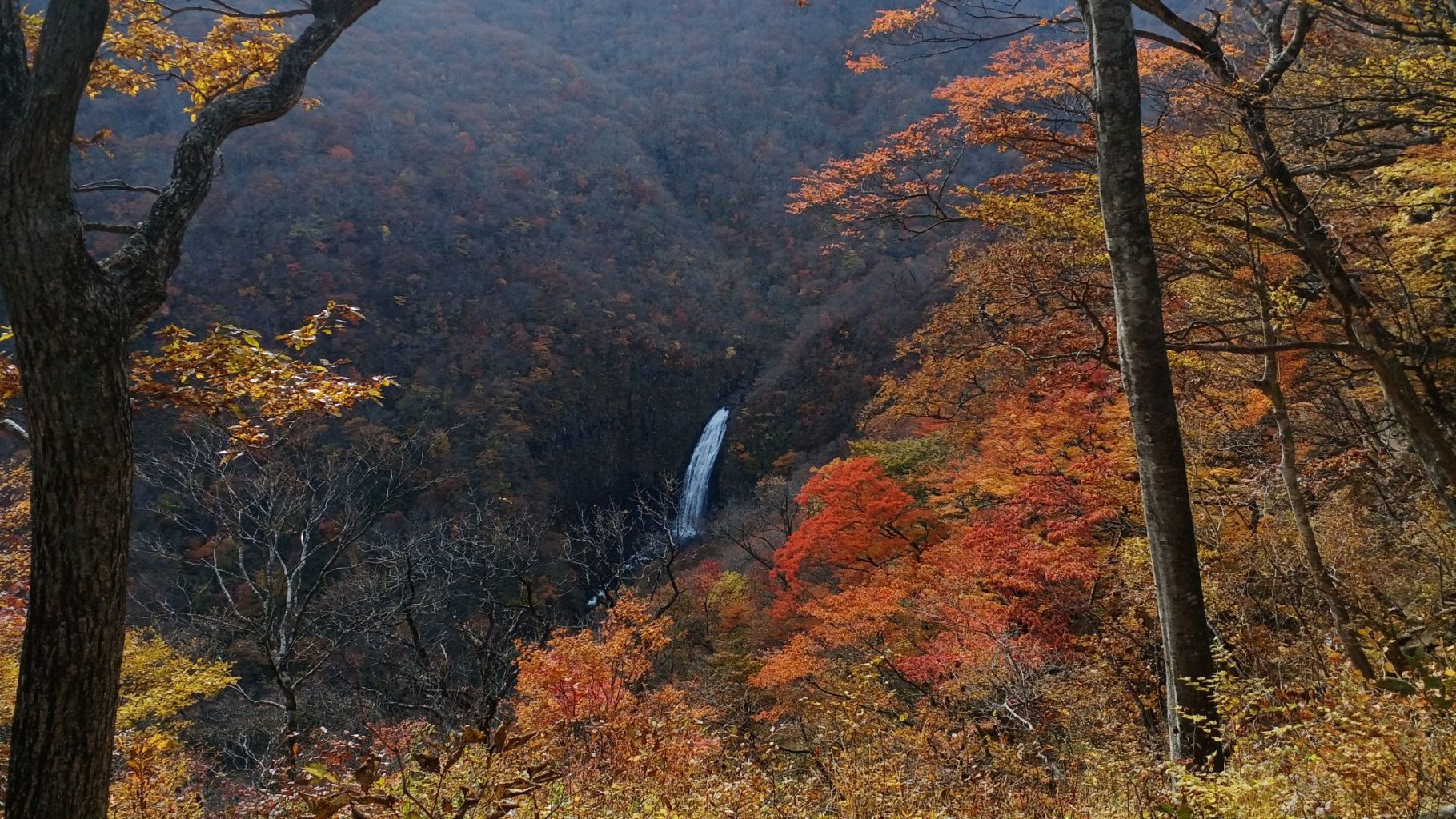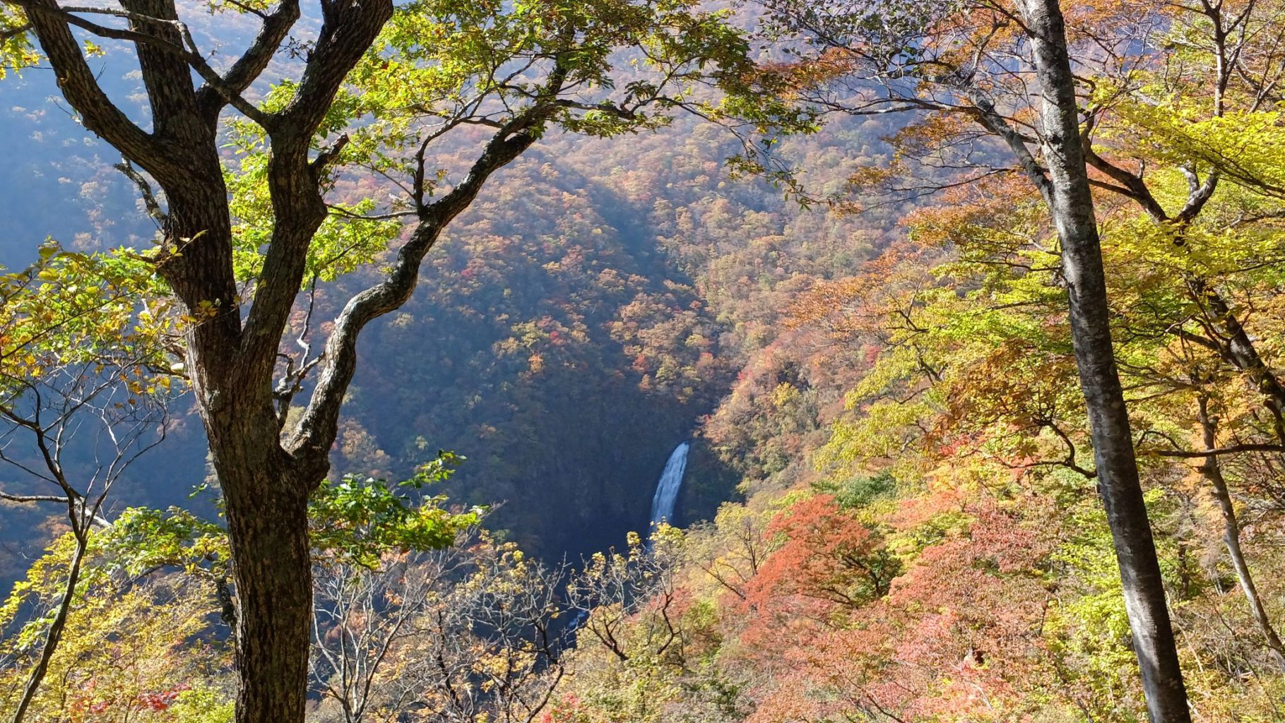 不動滝 展望台から滝見台 周辺では、紅葉が見ごろに近づいています。