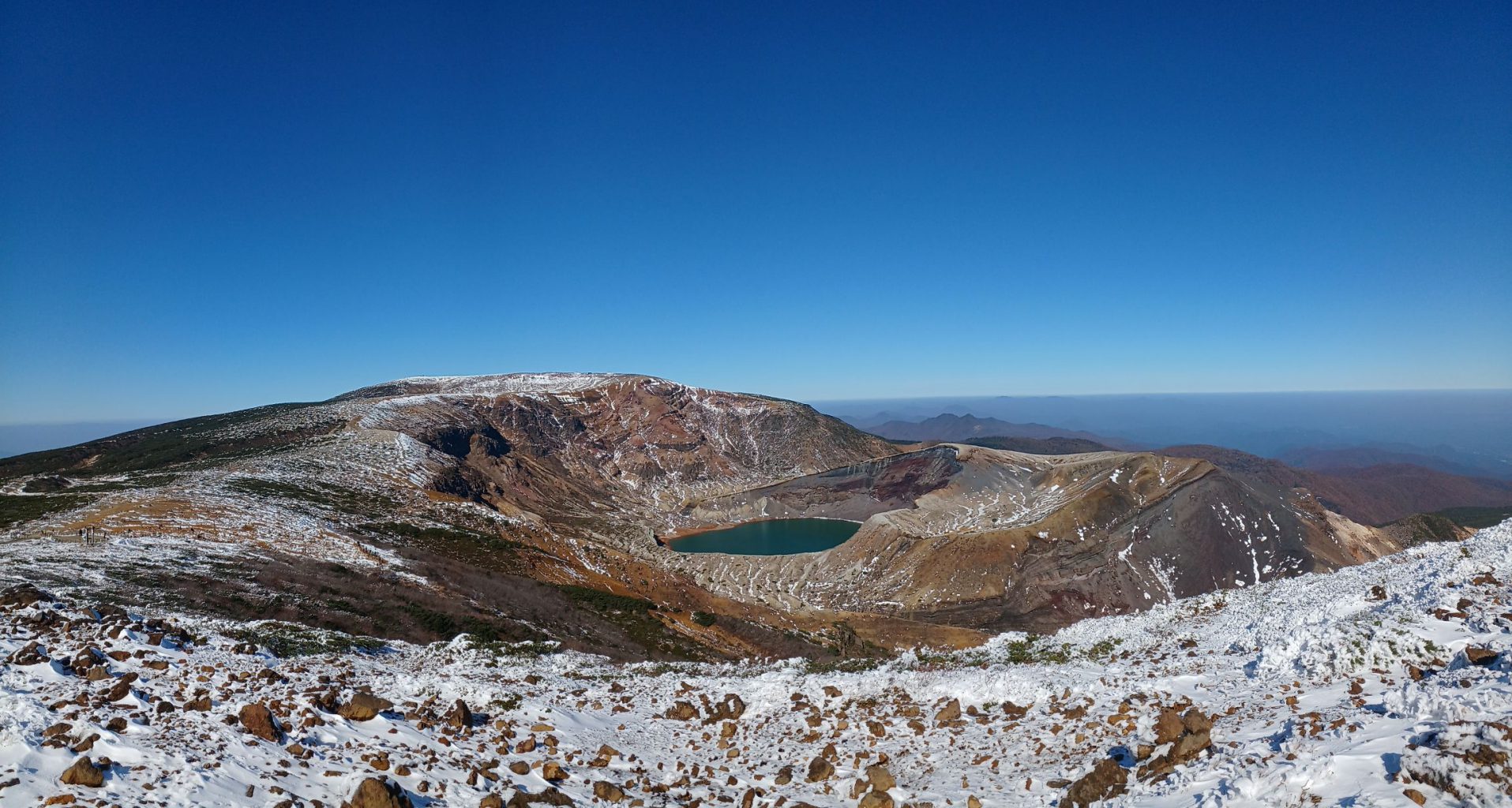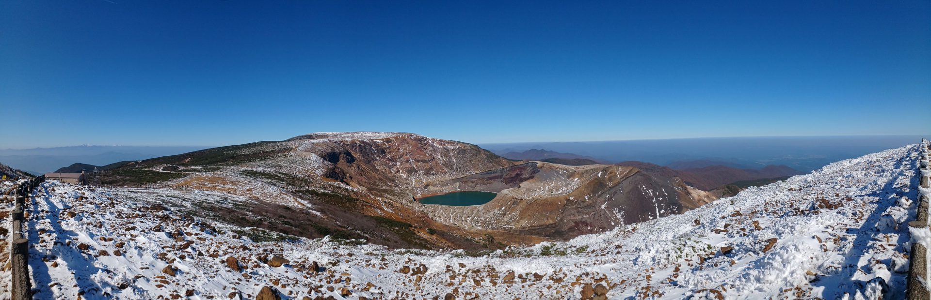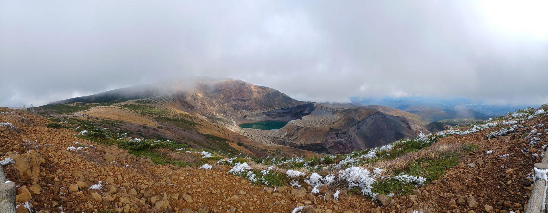 刈田岳山頂からの御釜パノラマ霧氷20251023