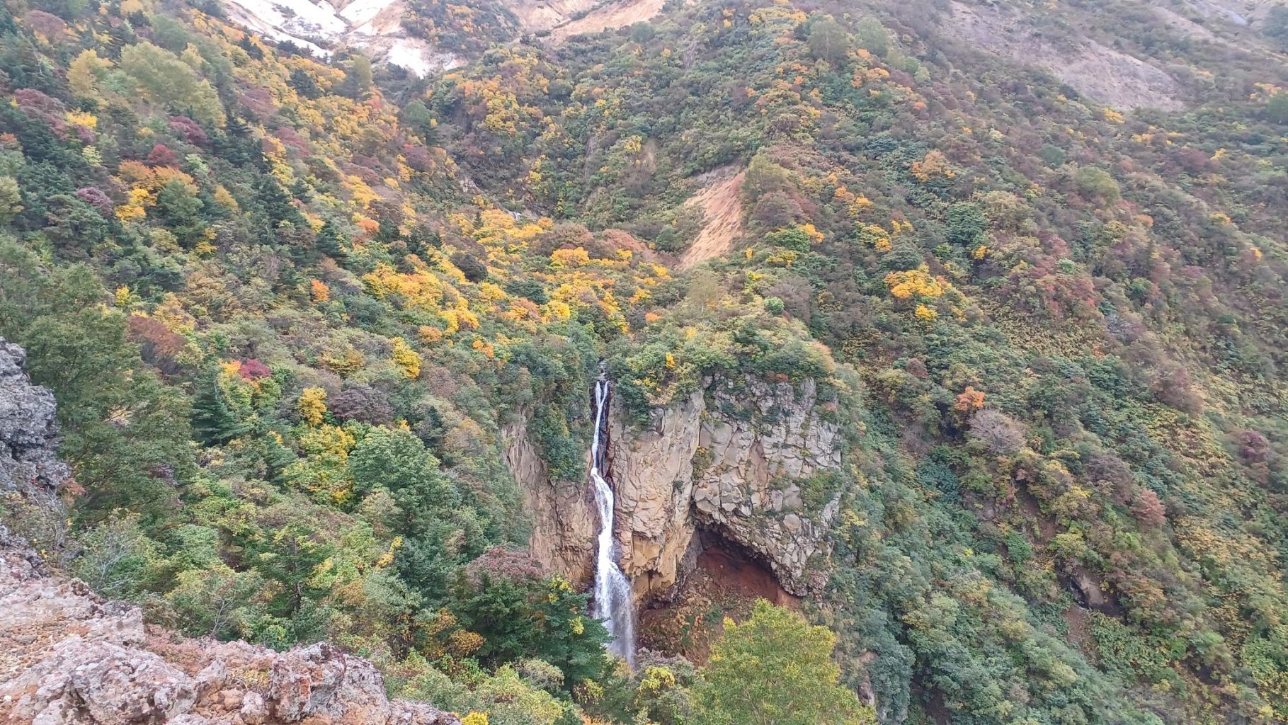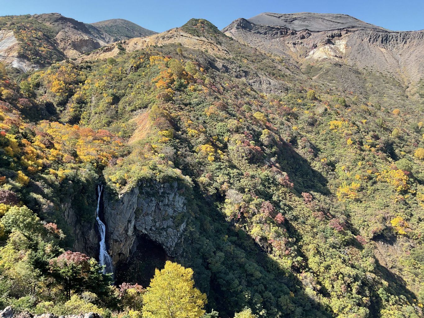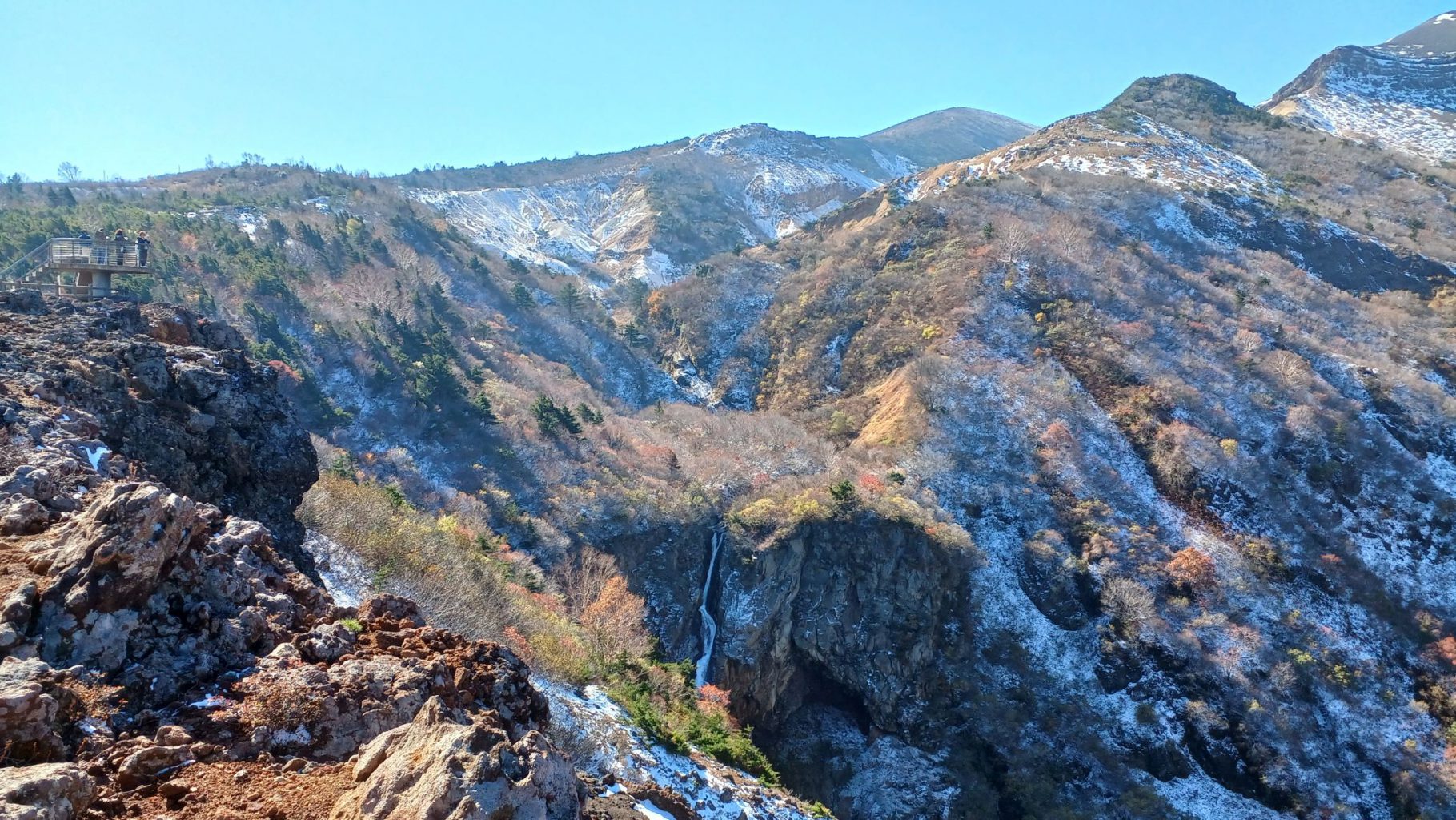 来年 2026年 4月下旬の開通まで、「御釜の見学」、「宮城山形県の境の通り抜け」はできません。不動滝20251107