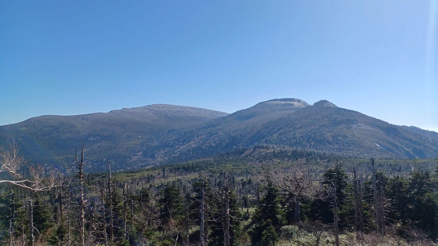 遠目からでも、尾根あたりがうっすらと白くなっています。