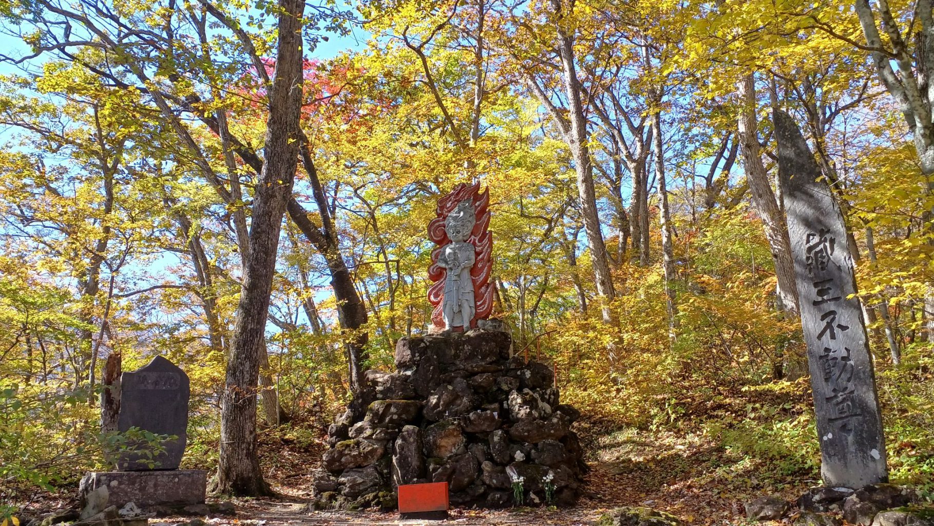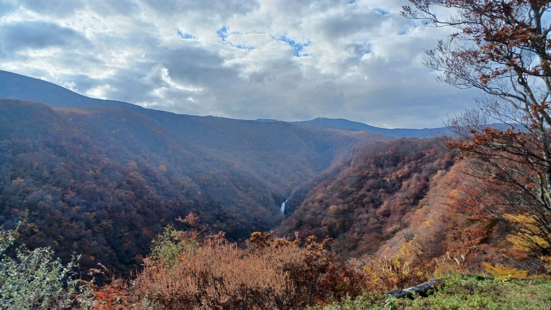 「蔵王不動尊 不動滝展望台」周辺では、紅葉が残っているところはありますが、散り始めています。