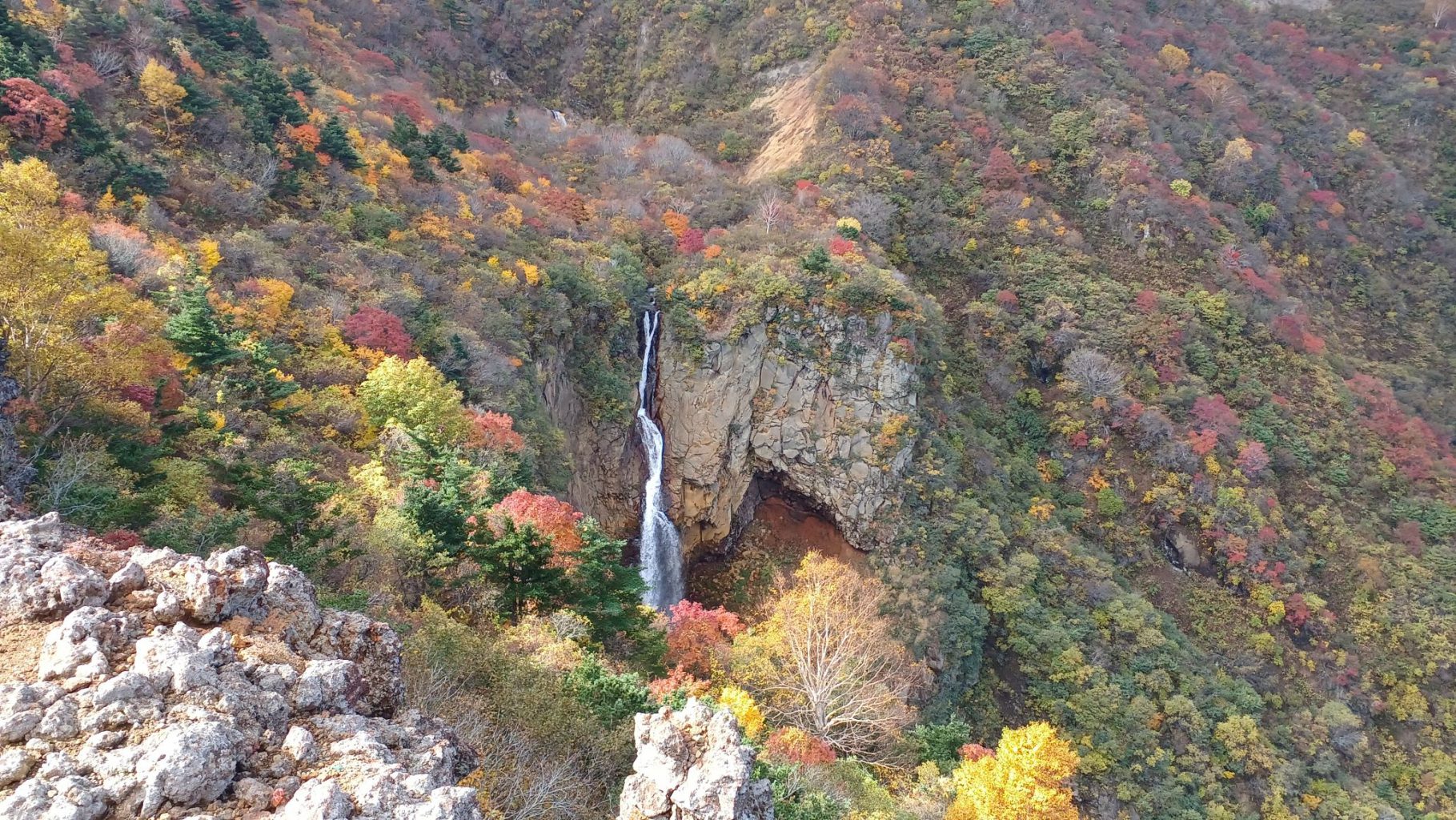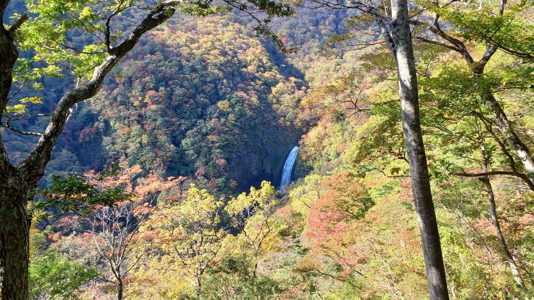 「不帰の滝」周辺の紅葉も黄色に色づき始めているところを見られます。