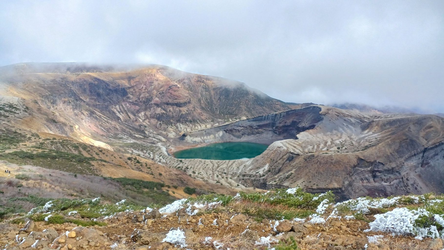 なかなか見ることができない貴重な景色です先週放送されたテレビの効果か、NHK 「ブラタモリ」のお話しをしている方が多く、御釜の見学に訪れていらっしゃいました。
