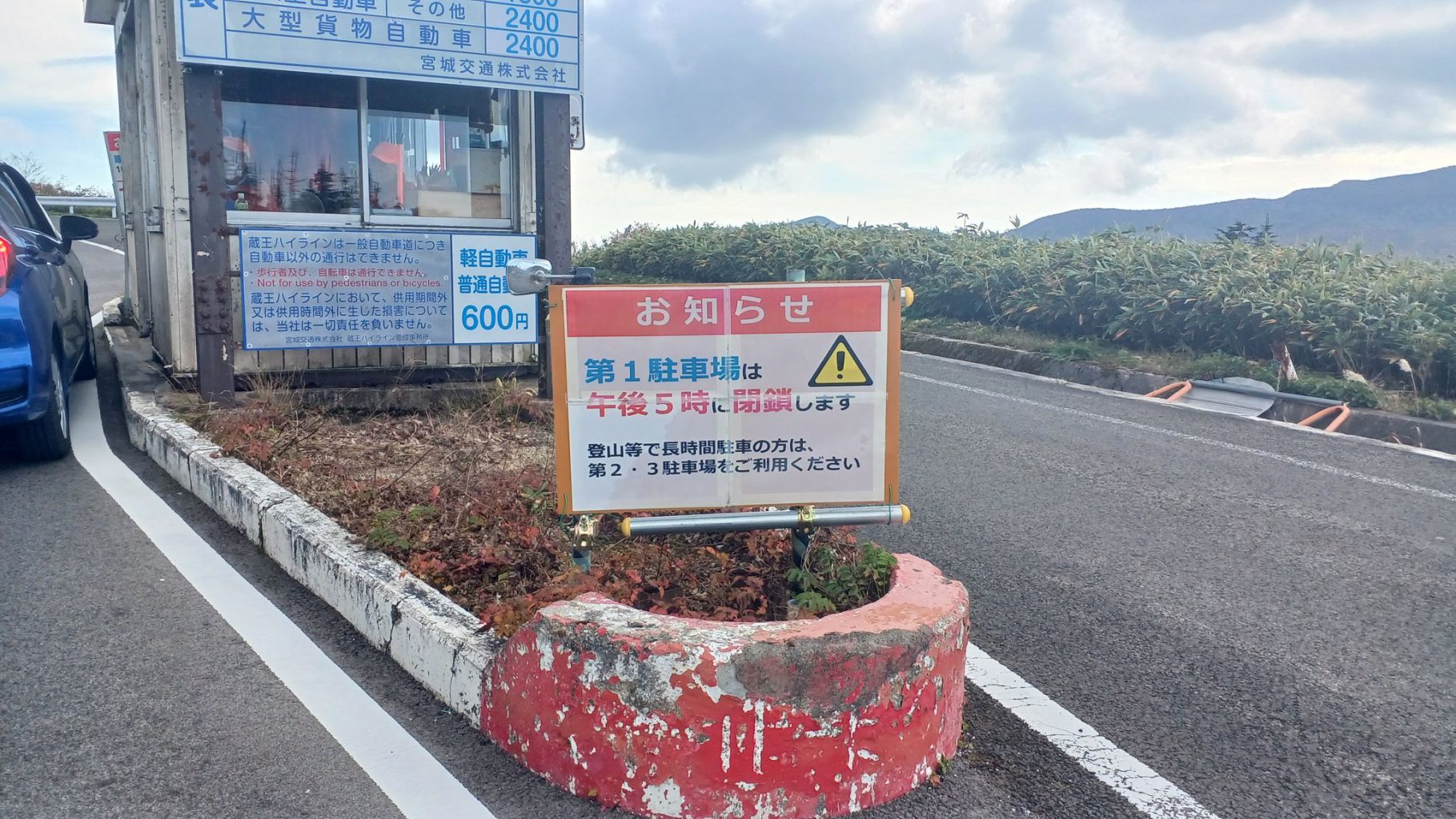 注意)蔵王ハイラインのつきあたりにある蔵王刈田山頂レストハウス駐車場では、第1駐車場を17時に閉鎖します。