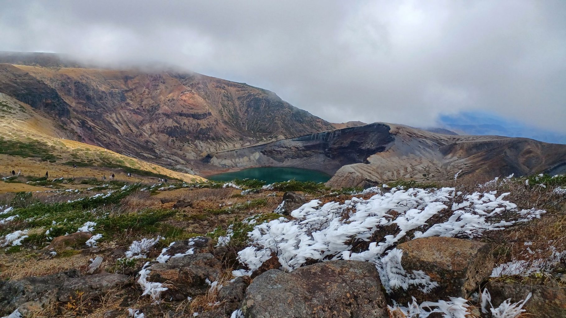 山頂、御釜展望台 付近も見ごろから散り初めに移るタイミングです。