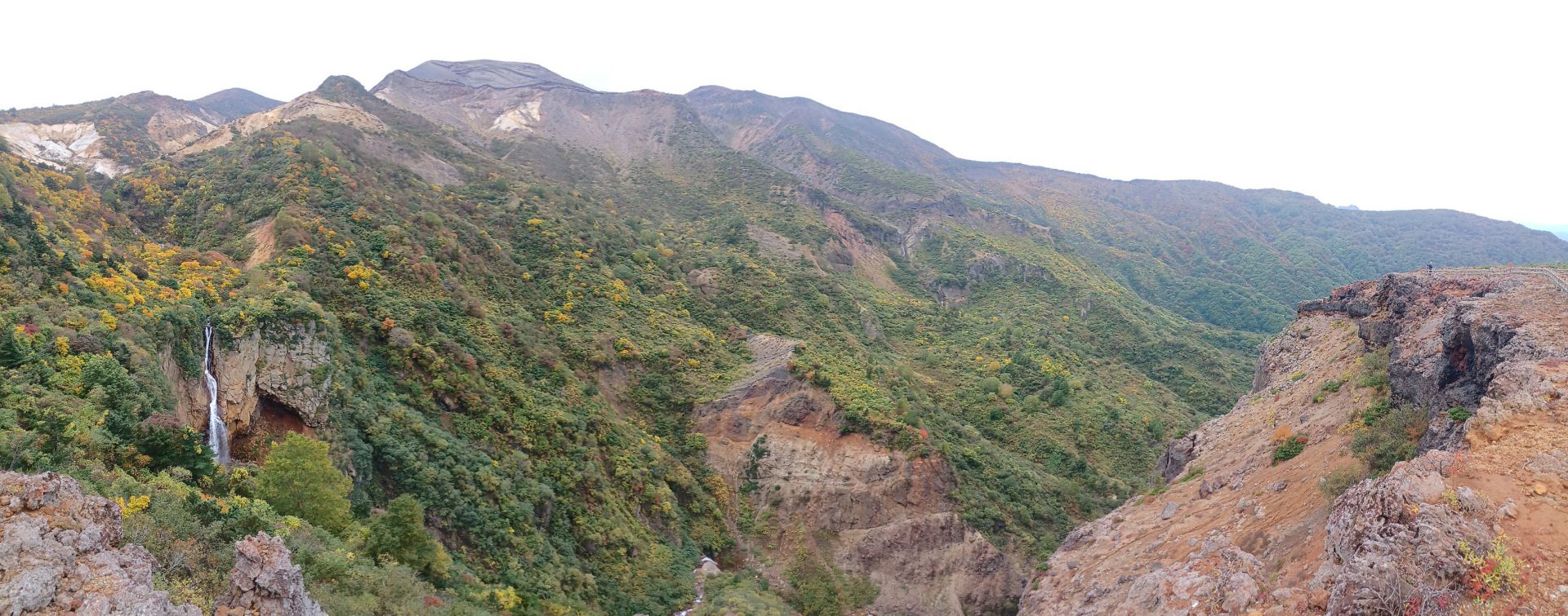 宮城県蔵王町遠刈田温泉山頂から山麓へ紅葉が下りてきて、