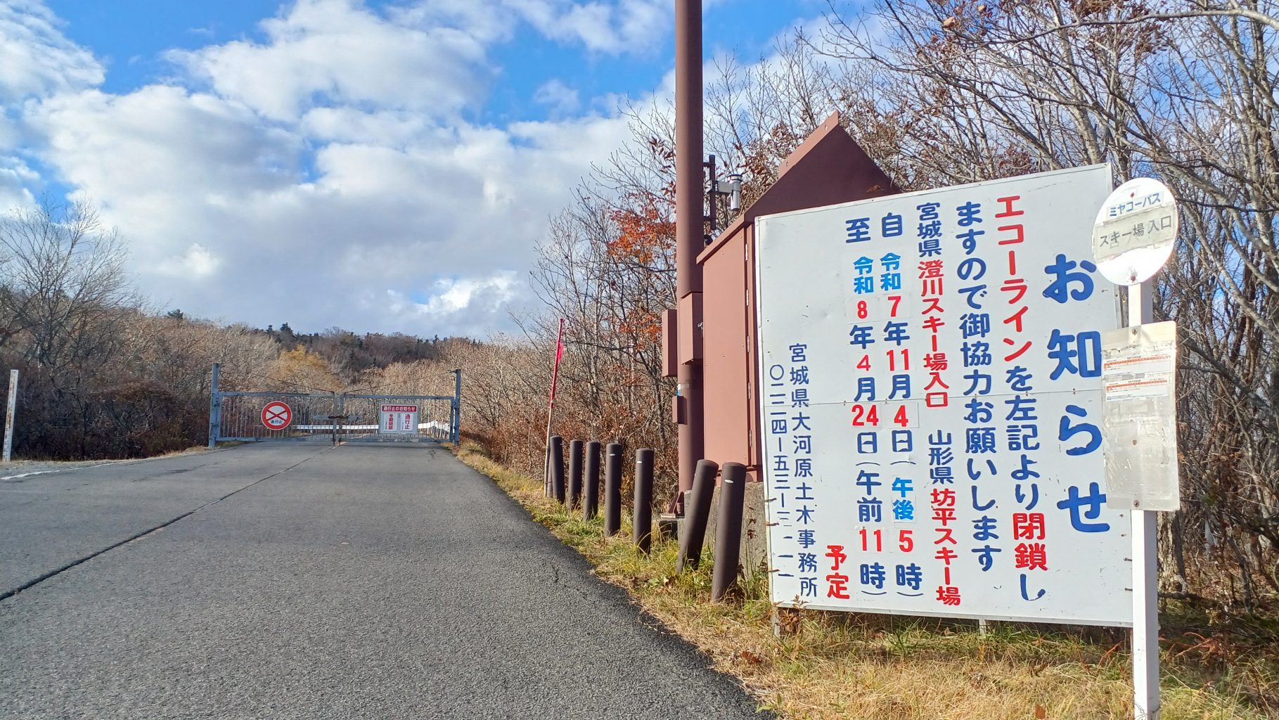 「宮城蔵王 すみかわ スノーパーク」より上では「冬期通行止」規制が始まります。