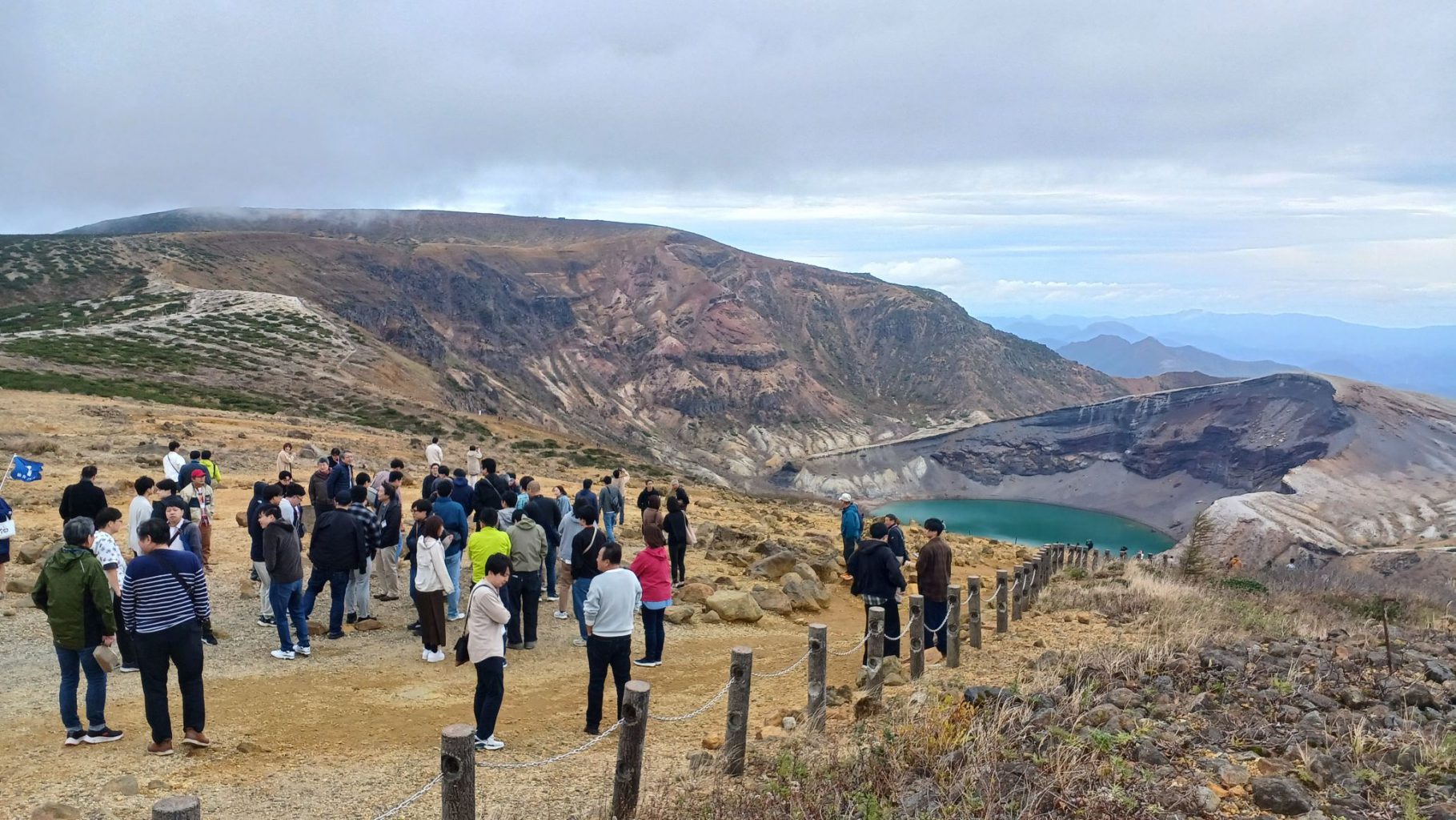 御釜見学に、多くの団体の観光客の皆さんがお越しになっていました。