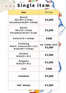 • スキー・スノーボード一式